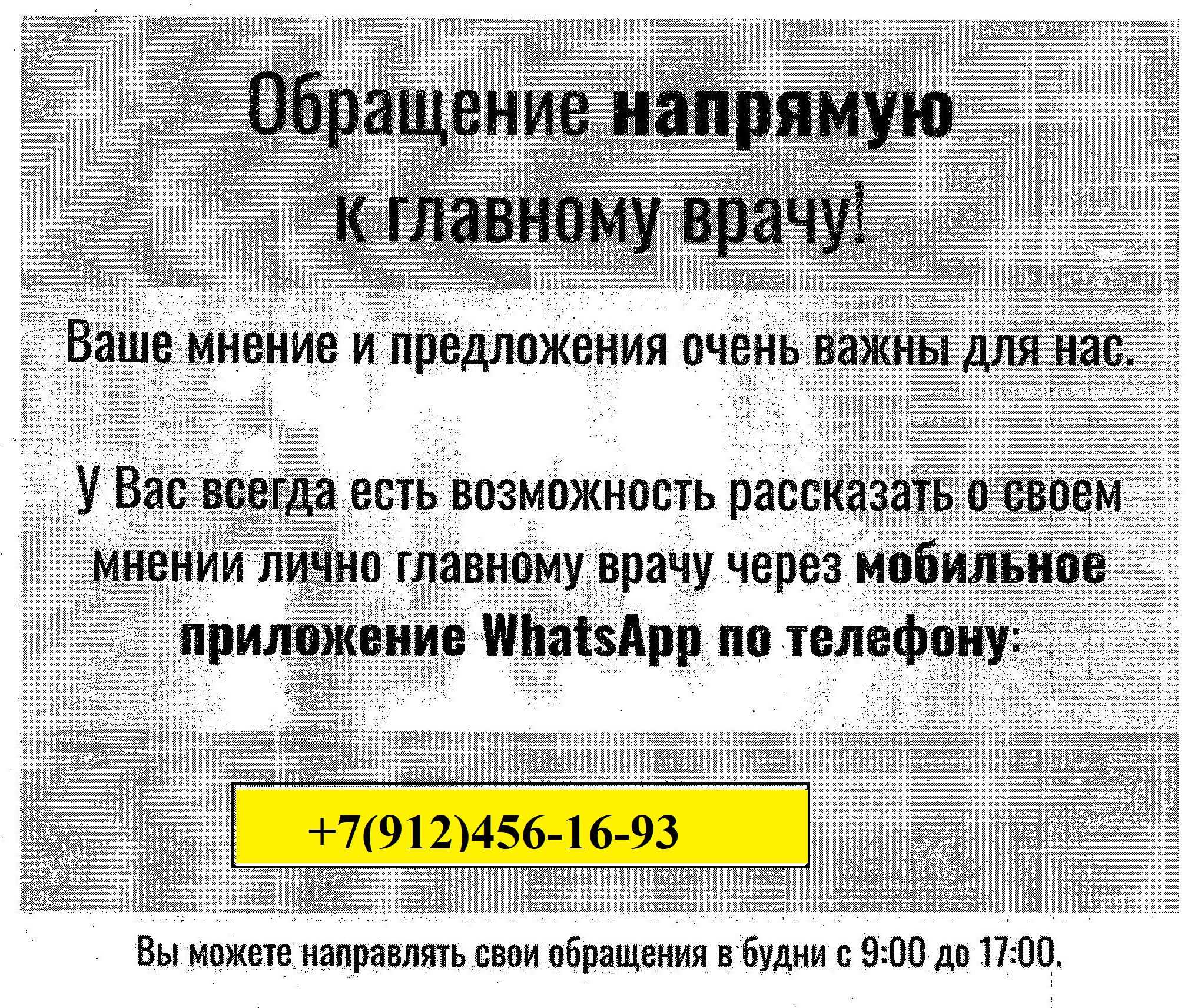 Номер РЕГИСТРАТУРЫ ПОЛИКЛИНИКИ 8 (34150) 3-13-28